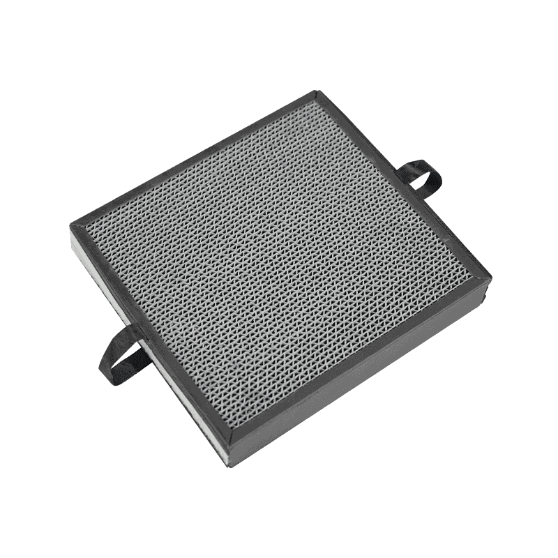 Filtres photocatalytiques sont basés sur une réaction chimique connue sous le nom de photocatalyse, qui utilise un catalyseur (généralement du dioxyde de titane, TiO₂) activé par la lumière (généralement ultraviolette ou lumière UV) pour décomposer les polluants dans l'air. Ce processus est une forme d'oxydation qui permet la décomposition des composés organiques et des gaz nocifs en substances plus simples et non toxiques, telles que le dioxyde de carbone (CO₂) et la vapeur d'eau (H₂O). Les composants clés d'un filtre photocatalytique comprennent le photocatalyseur, la source de lumière et les polluants ciblés par le filtre.